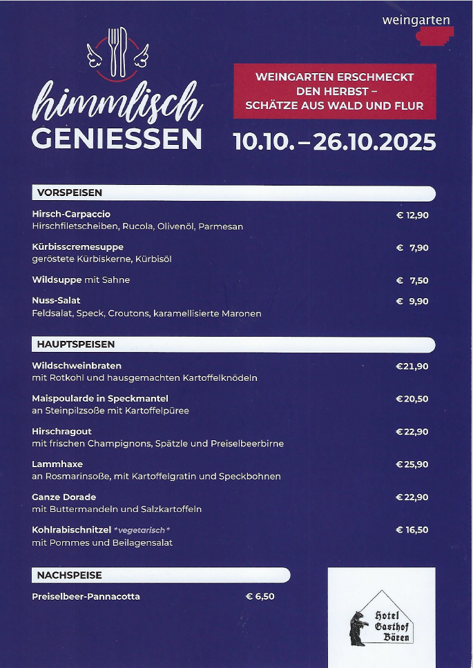 Seit Jahren ist der Hotel Gasthof Bären fester Bestandteil von Weingarten und ein Ort der Gastfreundschaft und Gemütlichkeit. Mit unserer langen Geschichte stehen wir für authentische, bürgerliche Küche und verwöhnen unsere Gäste mit klassischen schwäbischen Spezialitäten – von herzhaften Maultaschen bis hin zum traditionellen Zwiebelrostbraten.